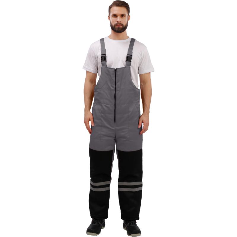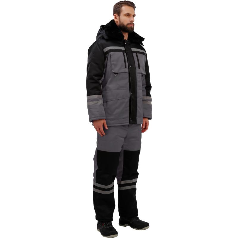 Костюм рабочий зимний мужской з03-КПК с СОП серый/чёрный (размер 48-50, рост 158-164) <br><br>Рекомендован для использования в сельском хозяйстве, логистике, лёгкой промышленности, строительстве. <br><br>Ткань верха: смесовая, 80% ПЭ, 20% хлопок, плотностью 190 г/кв.м <br>Водоотталкивающая отделка. <br>Материал подкладки 60 г/кв.м, 100% ПЭ. <br>Утеплитель плотностью 360 г/кв.м (полочка, спинка) и 240 г/кв.м (рукава, полукомбинезон). <br>Мех 600 г/кв.м, 100% ПЭ (воротник). <br><br>Технология изготовления термоскреплённого синтепона (евросинтепона) позволяет использовать данный утеплитель для создания более тонких изделий с сохранением термозащитных свойств. Важными преимуществами утеплителя являются лёгкость и хорошая пластичность, что улучшает подвижность в костюме. А также исключение миграции волокна через ткани верха и подкладки за счёт скрепления слоев. <br><br>Куртка прямого силуэта с застёжкой на молнию, две ветрозащитные планки на кнопках. Верхние накладные карманы с объёмом и входом на молнию; под карманами полукольца. Нижние объёмные накладные карманы с клапанами. Регулировка объёма куртки по линии талии со стороны подкладки при помощи шнура и фиксаторов. Съёмный капюшон на кнопках, с регулируемым объёмом по лицевому срезу при помощи шнура и фиксаторов. Воротник отложной со съёмным меховым воротником на пуговицах. Притачная утепляющая подкладка с накладным карманом на левой полочке и трикотажными напульсниками. <br><br>Полукомбинезон с застёжкой на молнию. Карманы боковые накладные с наклонным входом, на правой задней половинке дополнительный карман накладной карман. Спинка с кулиской из эластичной ленты. Бретели с эластичной лентой и фиксируются на фастексы. <br><br>Светоотражающая лента: ширина 25 мм, 150 кнд, в один ряд, на полочке, спинке. В два ряда на рукавах, полукомбинезоне. <br><br>Температурный диапазон: до — 18°С. Климатический пояс: III. Класс защиты: 2. <br><br>Защитные свойства: <br>Тн — от пониженных температур <br>З — от общих производственных загрязнений <br><br>Соответствует ГОСТ 12.4.303-2016, ТР ТС 019/2011 <br><br>Подобрать размер <br><br>Цвет на изображении товара в интернет-магазине или в печатном каталоге может отличаться от оригинала из-за особенностей цветопередачи монитора.