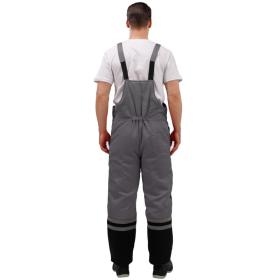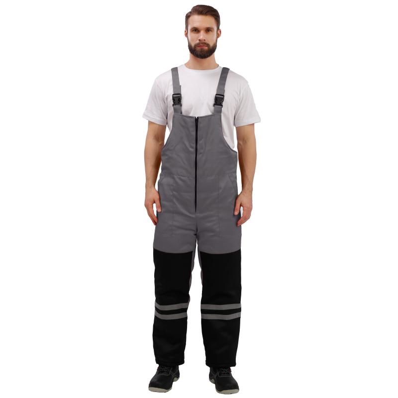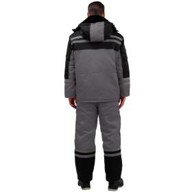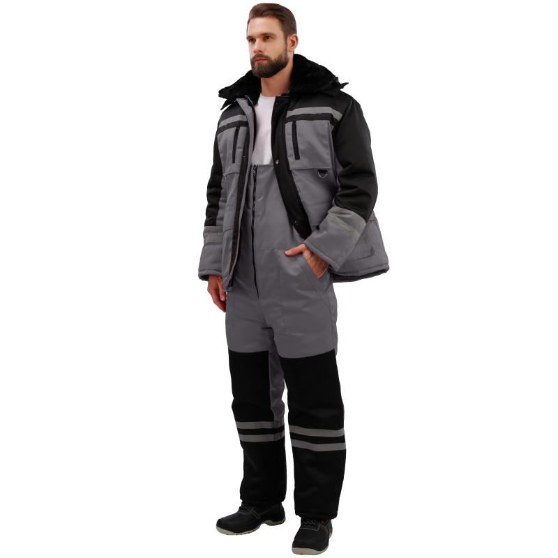 Костюм рабочий зимний мужской з03-КПК с СОП серый/чёрный (размер 52-54, рост 170-176) <br /><br />Рекомендован для использования в сельском хозяйстве, логистике, лёгкой промышленности, строительстве. <br /><br />Ткань верха: смесовая, 80% ПЭ, 20% хлопок, плотностью 190 г/кв.м <br />Водоотталкивающая отделка. <br />Материал подкладки 60 г/кв.м, 100% ПЭ. <br />Утеплитель плотностью 360 г/кв.м (полочка, спинка) и 240 г/кв.м (рукава, полукомбинезон). <br />Мех 600 г/кв.м, 100% ПЭ (воротник). <br /><br />Технология изготовления термоскреплённого синтепона (евросинтепона) позволяет использовать данный утеплитель для создания более тонких изделий с сохранением термозащитных свойств. Важными преимуществами утеплителя являются лёгкость и хорошая пластичность, что улучшает подвижность в костюме. А также исключение миграции волокна через ткани верха и подкладки за счёт скрепления слоев. <br /><br />Куртка прямого силуэта с застёжкой на молнию, две ветрозащитные планки на кнопках. Верхние накладные карманы с объёмом и входом на молнию; под карманами полукольца. Нижние объёмные накладные карманы с клапанами. Регулировка объёма куртки по линии талии со стороны подкладки при помощи шнура и фиксаторов. Съёмный капюшон на кнопках, с регулируемым объёмом по лицевому срезу при помощи шнура и фиксаторов. Воротник отложной со съёмным меховым воротником на пуговицах. Притачная утепляющая подкладка с накладным карманом на левой полочке и трикотажными напульсниками. <br /><br />Полукомбинезон с застёжкой на молнию. Карманы боковые накладные с наклонным входом, на правой задней половинке дополнительный карман накладной карман. Спинка с кулиской из эластичной ленты. Бретели с эластичной лентой и фиксируются на фастексы. <br /><br />Светоотражающая лента: ширина 25 мм, 150 кнд, в один ряд, на полочке, спинке. В два ряда на рукавах, полукомбинезоне. <br /><br />Температурный диапазон: до — 18°С. Климатический пояс: III. Класс защиты: 2. <br /><br />Защитные свойства: <br />Тн — от пониженных температур <br />З — от общих производственных загрязнений <br /><br />Соответствует ГОСТ 12.4.303-2016, ТР ТС 019/2011 <br /><br />Подобрать размер <br /><br />Цвет на изображении товара в интернет-магазине или в печатном каталоге может отличаться от оригинала из-за особенностей цветопередачи монитора.
