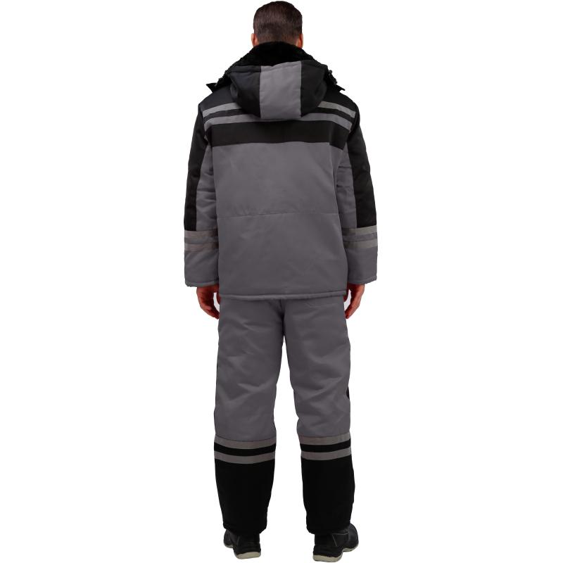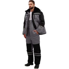 Костюм рабочий зимний мужской з03-КПК с СОП серый/чёрный (размер 56-58, рост 170-176) <br /><br />Рекомендован для использования в сельском хозяйстве, логистике, лёгкой промышленности, строительстве. <br /><br />Ткань верха: смесовая, 80% ПЭ, 20% хлопок, плотностью 190 г/кв.м <br />Водоотталкивающая отделка. <br />Материал подкладки 60 г/кв.м, 100% ПЭ. <br />Утеплитель плотностью 360 г/кв.м (полочка, спинка) и 240 г/кв.м (рукава, полукомбинезон). <br />Мех 600 г/кв.м, 100% ПЭ (воротник). <br /><br />Технология изготовления термоскреплённого синтепона (евросинтепона) позволяет использовать данный утеплитель для создания более тонких изделий с сохранением термозащитных свойств. Важными преимуществами утеплителя являются лёгкость и хорошая пластичность, что улучшает подвижность в костюме. А также исключение миграции волокна через ткани верха и подкладки за счёт скрепления слоев. <br /><br />Куртка прямого силуэта с застёжкой на молнию, две ветрозащитные планки на кнопках. Верхние накладные карманы с объёмом и входом на молнию; под карманами полукольца. Нижние объёмные накладные карманы с клапанами. Регулировка объёма куртки по линии талии со стороны подкладки при помощи шнура и фиксаторов. Съёмный капюшон на кнопках, с регулируемым объёмом по лицевому срезу при помощи шнура и фиксаторов. Воротник отложной со съёмным меховым воротником на пуговицах. Притачная утепляющая подкладка с накладным карманом на левой полочке и трикотажными напульсниками. <br /><br />Полукомбинезон с застёжкой на молнию. Карманы боковые накладные с наклонным входом, на правой задней половинке дополнительный карман накладной карман. Спинка с кулиской из эластичной ленты. Бретели с эластичной лентой и фиксируются на фастексы. <br /><br />Светоотражающая лента: ширина 25 мм, 150 кнд, в один ряд, на полочке, спинке. В два ряда на рукавах, полукомбинезоне. <br /><br />Температурный диапазон: до — 18°С. Климатический пояс: III. Класс защиты: 2. <br /><br />Защитные свойства: <br />Тн — от пониженных температур <br />З — от общих производственных загрязнений <br /><br />Соответствует ГОСТ 12.4.303-2016, ТР ТС 019/2011 <br /><br />Подобрать размер <br /><br />Цвет на изображении товара в интернет-магазине или в печатном каталоге может отличаться от оригинала из-за особенностей цветопередачи монитора.