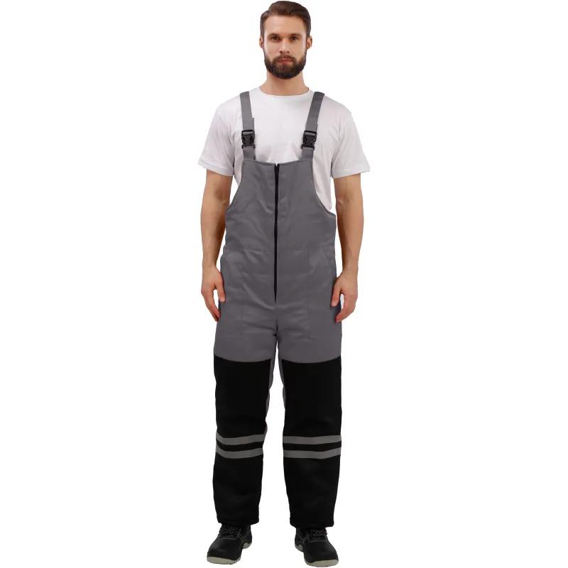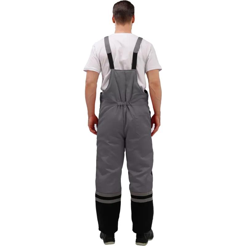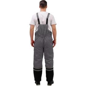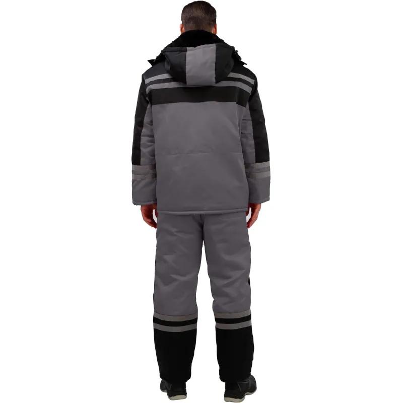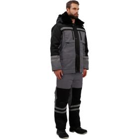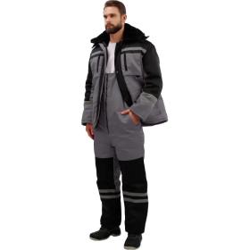 Костюм рабочий зимний мужской з03-КПК с СОП серый/чёрный (размер 60-62, рост 182-188) <br /><br />Рекомендован для использования в сельском хозяйстве, логистике, лёгкой промышленности, строительстве. <br /><br />Ткань верха: смесовая, 80% ПЭ, 20% хлопок, плотностью 190 г/кв.м <br />Водоотталкивающая отделка. <br />Материал подкладки 60 г/кв.м, 100% ПЭ. <br />Утеплитель плотностью 360 г/кв.м (полочка, спинка) и 240 г/кв.м (рукава, полукомбинезон). <br />Мех 600 г/кв.м, 100% ПЭ (воротник). <br /><br />Технология изготовления термоскреплённого синтепона (евросинтепона) позволяет использовать данный утеплитель для создания более тонких изделий с сохранением термозащитных свойств. Важными преимуществами утеплителя являются лёгкость и хорошая пластичность, что улучшает подвижность в костюме. А также исключение миграции волокна через ткани верха и подкладки за счёт скрепления слоев. <br /><br />Куртка прямого силуэта с застёжкой на молнию, две ветрозащитные планки на кнопках. Верхние накладные карманы с объёмом и входом на молнию; под карманами полукольца. Нижние объёмные накладные карманы с клапанами. Регулировка объёма куртки по линии талии со стороны подкладки при помощи шнура и фиксаторов. Съёмный капюшон на кнопках, с регулируемым объёмом по лицевому срезу при помощи шнура и фиксаторов. Воротник отложной со съёмным меховым воротником на пуговицах. Притачная утепляющая подкладка с накладным карманом на левой полочке и трикотажными напульсниками. <br /><br />Полукомбинезон с застёжкой на молнию. Карманы боковые накладные с наклонным входом, на правой задней половинке дополнительный карман накладной карман. Спинка с кулиской из эластичной ленты. Бретели с эластичной лентой и фиксируются на фастексы. <br /><br />Светоотражающая лента: ширина 25 мм, 150 кнд, в один ряд, на полочке, спинке. В два ряда на рукавах, полукомбинезоне. <br /><br />Температурный диапазон: до — 18°С. Климатический пояс: III. Класс защиты: 2. <br /><br />Защитные свойства: <br />Тн — от пониженных температур <br />З — от общих производственных загрязнений <br /><br />Соответствует ГОСТ 12.4.303-2016, ТР ТС 019/2011 <br /><br />Подобрать размер <br /><br />Цвет на изображении товара в интернет-магазине или в печатном каталоге может отличаться от оригинала из-за особенностей цветопередачи монитора.