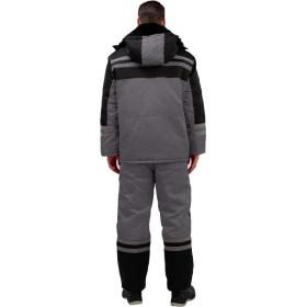 Костюм рабочий зимний мужской з03-КПК с СОП серый/чёрный (размер 64-66, рост 170-176) <br /><br />Рекомендован для использования в сельском хозяйстве, логистике, лёгкой промышленности, строительстве. <br /><br />Ткань верха: смесовая, 80% ПЭ, 20% хлопок, плотностью 190 г/кв.м <br />Водоотталкивающая отделка. <br />Материал подкладки 60 г/кв.м, 100% ПЭ. <br />Утеплитель плотностью 360 г/кв.м (полочка, спинка) и 240 г/кв.м (рукава, полукомбинезон). <br />Мех 600 г/кв.м, 100% ПЭ (воротник). <br /><br />Технология изготовления термоскреплённого синтепона (евросинтепона) позволяет использовать данный утеплитель для создания более тонких изделий с сохранением термозащитных свойств. Важными преимуществами утеплителя являются лёгкость и хорошая пластичность, что улучшает подвижность в костюме. А также исключение миграции волокна через ткани верха и подкладки за счёт скрепления слоев. <br /><br />Куртка прямого силуэта с застёжкой на молнию, две ветрозащитные планки на кнопках. Верхние накладные карманы с объёмом и входом на молнию; под карманами полукольца. Нижние объёмные накладные карманы с клапанами. Регулировка объёма куртки по линии талии со стороны подкладки при помощи шнура и фиксаторов. Съёмный капюшон на кнопках, с регулируемым объёмом по лицевому срезу при помощи шнура и фиксаторов. Воротник отложной со съёмным меховым воротником на пуговицах. Притачная утепляющая подкладка с накладным карманом на левой полочке и трикотажными напульсниками. <br /><br />Полукомбинезон с застёжкой на молнию. Карманы боковые накладные с наклонным входом, на правой задней половинке дополнительный карман накладной карман. Спинка с кулиской из эластичной ленты. Бретели с эластичной лентой и фиксируются на фастексы. <br /><br />Светоотражающая лента: ширина 25 мм, 150 кнд, в один ряд, на полочке, спинке. В два ряда на рукавах, полукомбинезоне. <br /><br />Температурный диапазон: до — 18°С. Климатический пояс: III. Класс защиты: 2. <br /><br />Защитные свойства: <br />Тн — от пониженных температур <br />З — от общих производственных загрязнений <br /><br />Соответствует ГОСТ 12.4.303-2016, ТР ТС 019/2011 <br /><br />Подобрать размер <br /><br />Цвет на изображении товара в интернет-магазине или в печатном каталоге может отличаться от оригинала из-за особенностей цветопередачи монитора.