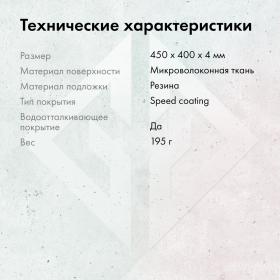 | Особенности | Прошитые края, водоотталкивающее покрытие, размер 450x400x4мм |