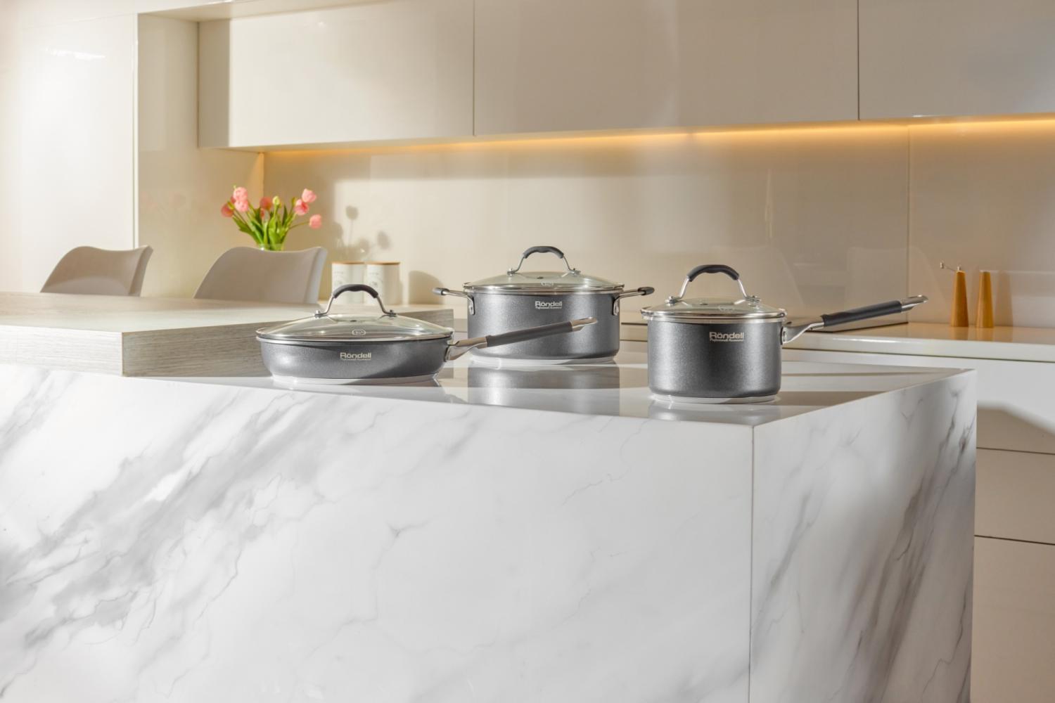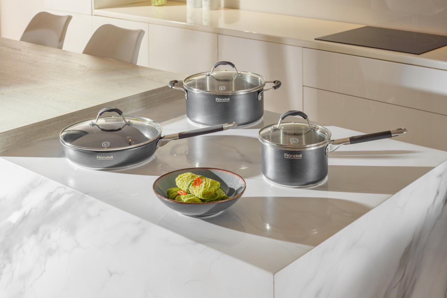 | Особенности | Технология: тройное вштампованное, а затем вплавленное дно без воздушных полостей. Внешнее покрытие и отделка: антипригарное покрытие для легкого ухода. Аксессуары: удобные комбинированные: нержавеющая сталь и силикон. Преимущества: подходит для всех видов плит. Подарочная упаковка с ручкой |