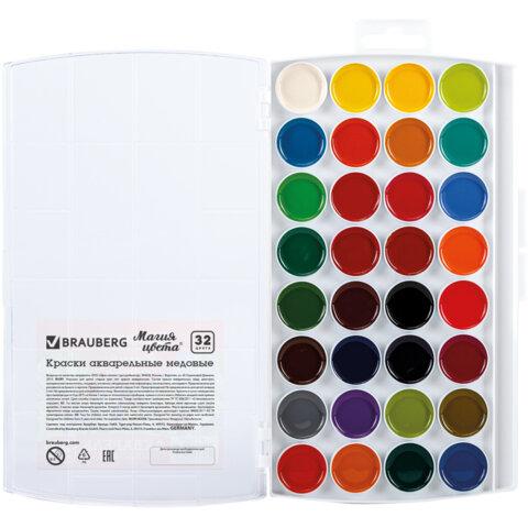 Акварельные краски BRAUBERG "МАГИЯ ЦВЕТА" идеально подходят для уроков детского творчества. Рисование способствует развитию образного мышления, глазомера, мелкой моторики рук, тонкого восприятия цветовой гаммы.32 ярких насыщенных цвета отлично смешиваются между собой и позволяют создать множество оттенков, обеспечивают однородное окрашивание. Краски быстро высыхают и не портятся со временем. Безопасны для детей, нетоксичны. Идеально подойдут для детского творчества и художественного изобразительного искусства.