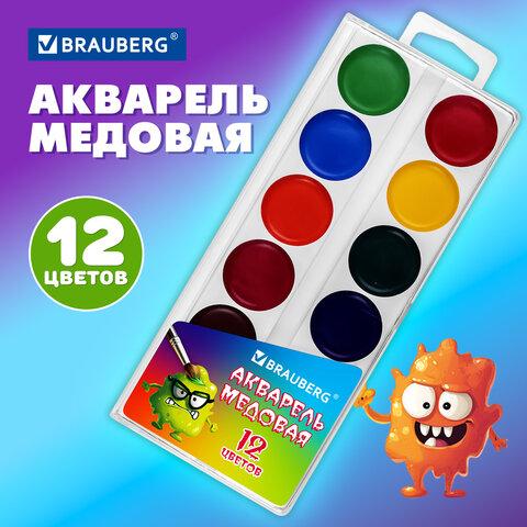 Краски акварельные BRAUBERG "МОНСТРИКИ", медовые, 12 цветов, круглые кюветы, 192641 / 4dealer.ru