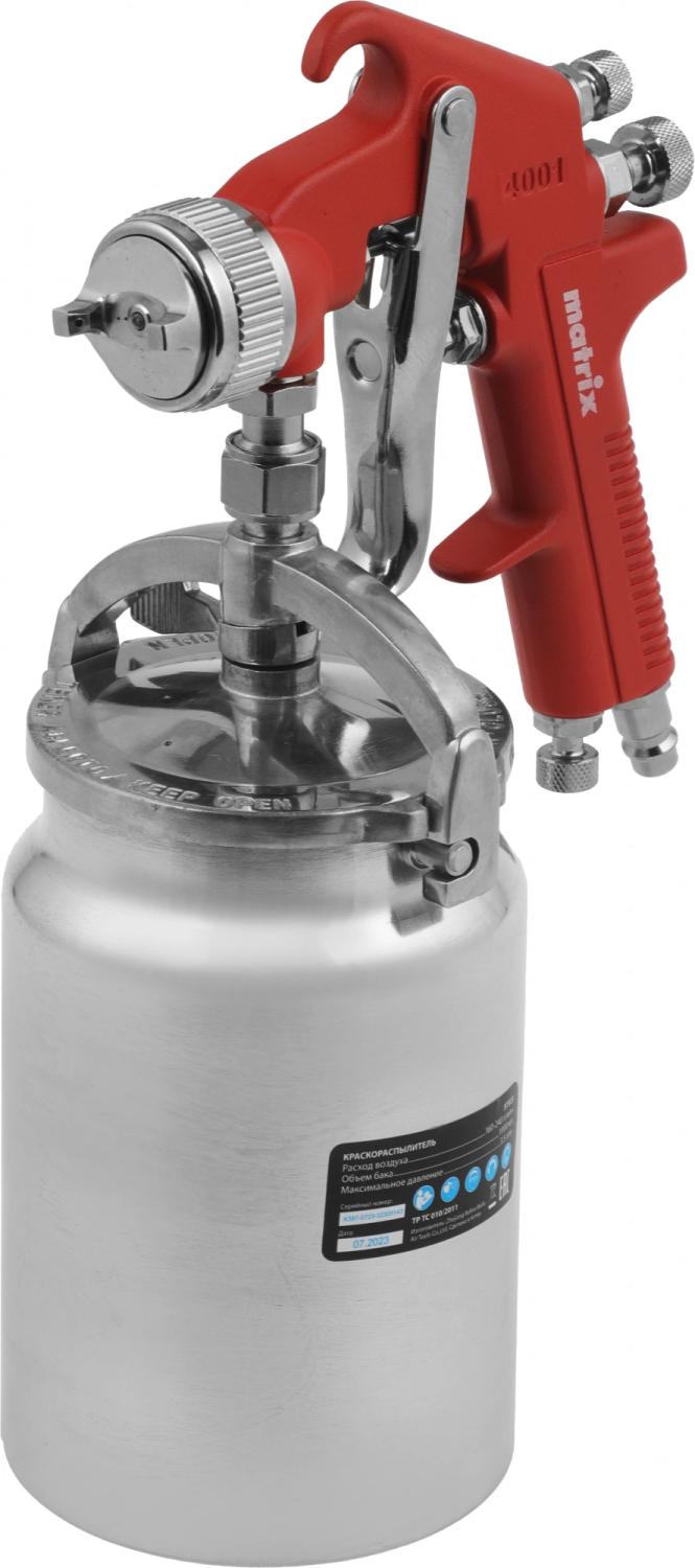 Краскораспылитель Matrix 57323 240л/мин соп.:1.8мм бак:1л серебристый/красный / 4dealer.ru