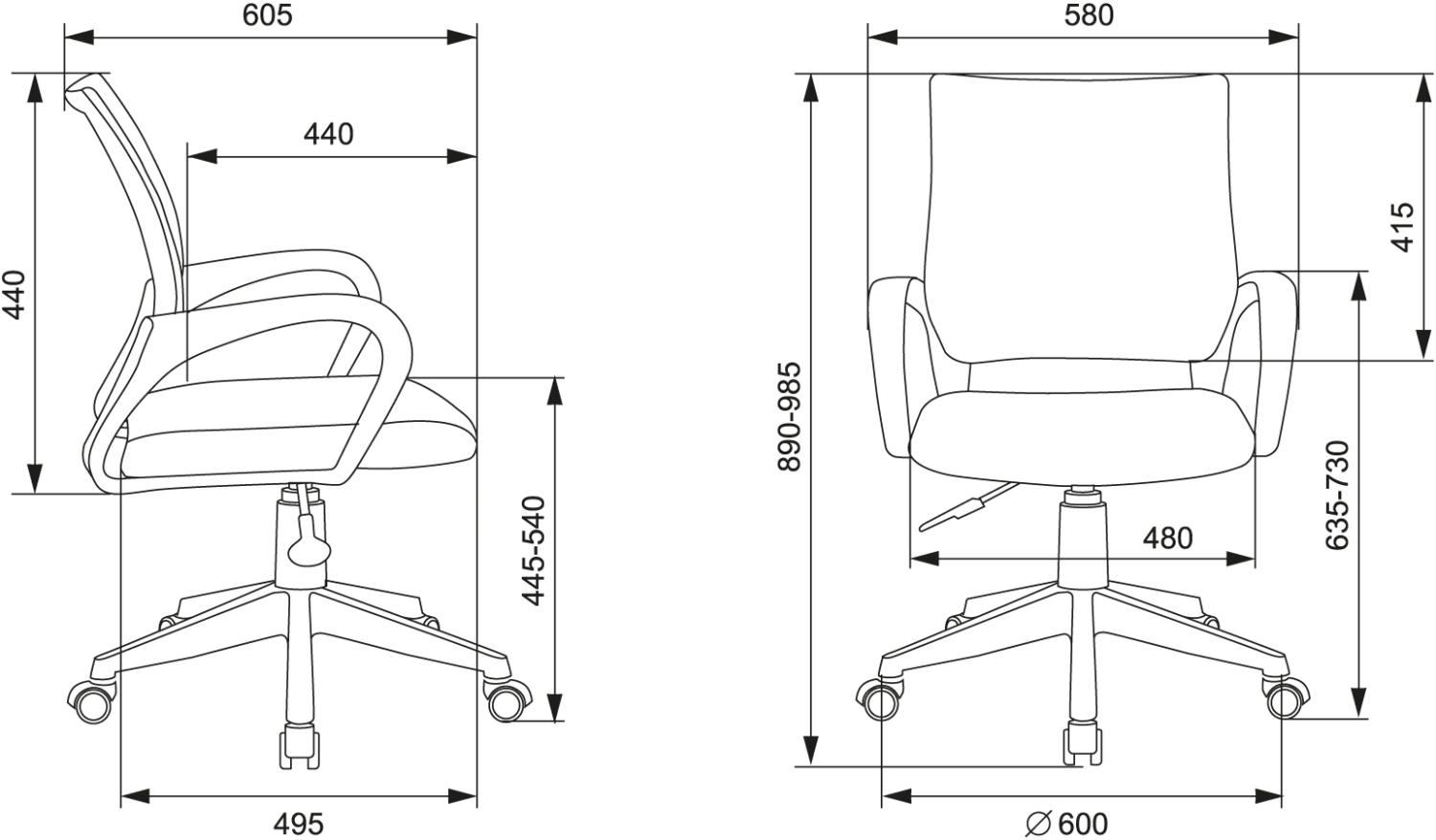 | Ширина с подлокотниками | 580 |