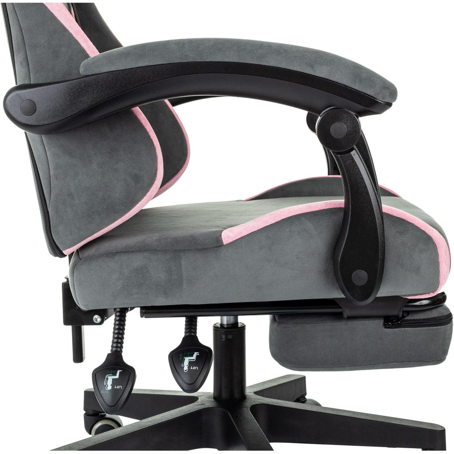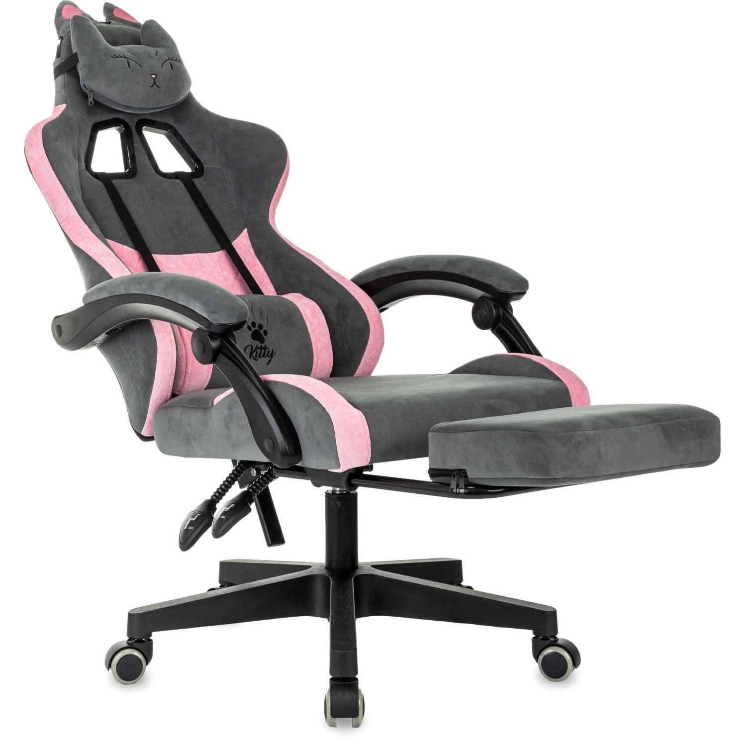 Внимание! Пожалуйста, проверяйте цвет изделия до начала сборки! Цвет на изображении товара в интернет-магазине или в печатном каталоге может отличаться от оригинала из-за особенностей цветопередачи.Кресло игровое KITTY/F для дома, для комнаты. Подойдёт как для взрослого, так и для школьника. Можно использовать как офисное. Подходит в офис или кабинет. Модель современная для любого интерьера. Надёжный корпус и долговечный наполнитель высокой плотности. Основа спинки — сварной металлический каркас. Чехлы сиденья и спинки выполнены из ткани высокой износостойкости. Простой уход за обивкой. Имеет регулировку высоты с помощью газлифта. Максимальная нагрузка — 120 кг. Кресло установлено на прочную 5-лучевую основу из пластика, в которую надёжно закреплены колёсики. В комплекте две эргономичные подушки для поддержки шеи и поясницы с вышивкой ’KITTY’. Для дополнительного комфорта в кресле предусмотрена выдвижная подножка. Система AIR на спинке кресла для вентиляции спины. Удобные анатомические подвижные подлокотники с мягкими накладками из ткани. Производство в России. Простая сборка. Соответствует стандарту BIFMA.