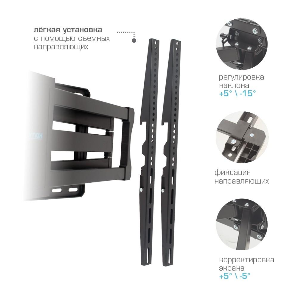 | Прочее | для телевизора, настенный, 40-90", до 101 кг, выдвижной, наклонный, поворотный, чёрный |