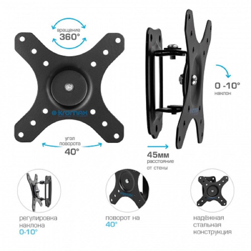 Kromax GALACTIC-1 черный 15"-32" макс.20кг настенный поворот и наклон / 4dealer.ru