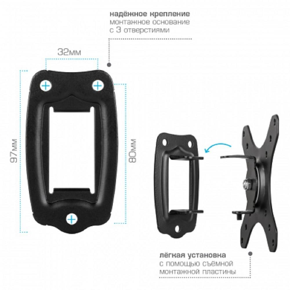 Прочее для телевизора, настенный, 15-32", до 20 кг, наклонный, поворотный, чёрный