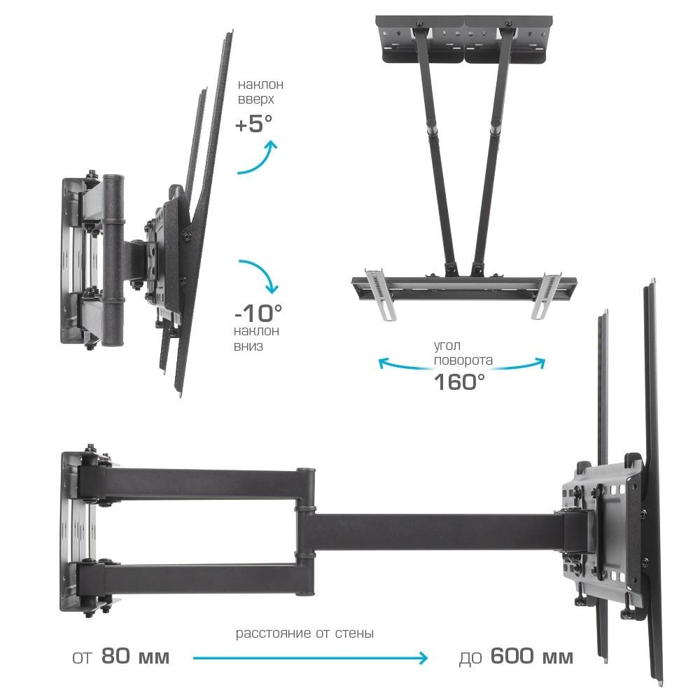 Kromax GALACTIC-44 черный 32"-70" макс.45кг настенный поворотно-выдвижной и наклонный