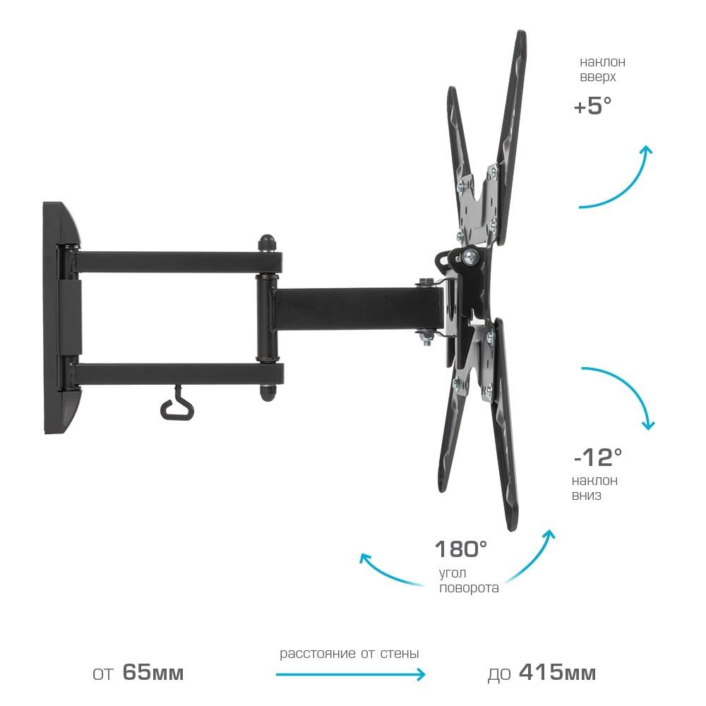 Kromax OPTIMA-414 черный 20"-55" макс.30кг настенный поворотно-выдвижной и наклонный / 4dealer.ru