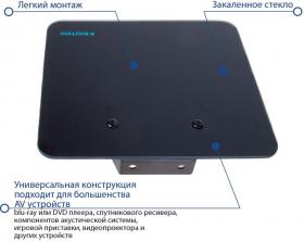 | Описание | Легкий монтаж. Закаленное стекло. Универсальная конструкция подходит для большинства AV устройств blu-ray или DVD плеера, спутникового ресивера, компонентов акустической системы, игровой приставки, видеопроектора и других устройств. Размер полки 175х200 мм. |