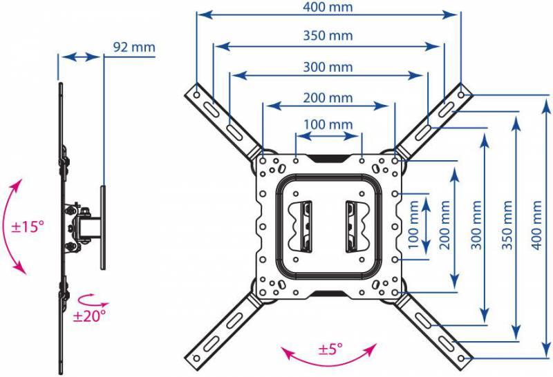 Кронштейн для телевизора Kromax DIX-16 черный 22"-55" макс.30кг настенный поворот и наклон