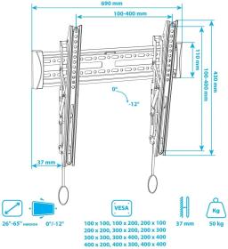 | Поддержка крепления VESA | 100x100, 400x400 |