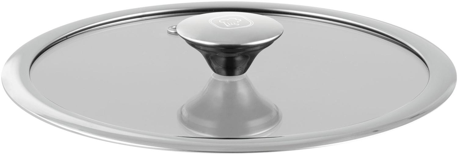 | Особенности | Аксессуары: стальная ручка; Отверстие в крышке для выпуска пара. Преимущества: широкий металлический обод предотвращает сколы и трещины; Отверстие для выпуска пара. Материал изготовления/технологии: Термостойкое стекло (4 мм) с ободом из нержавеющей стали. Упаковка: картонный рукав. |