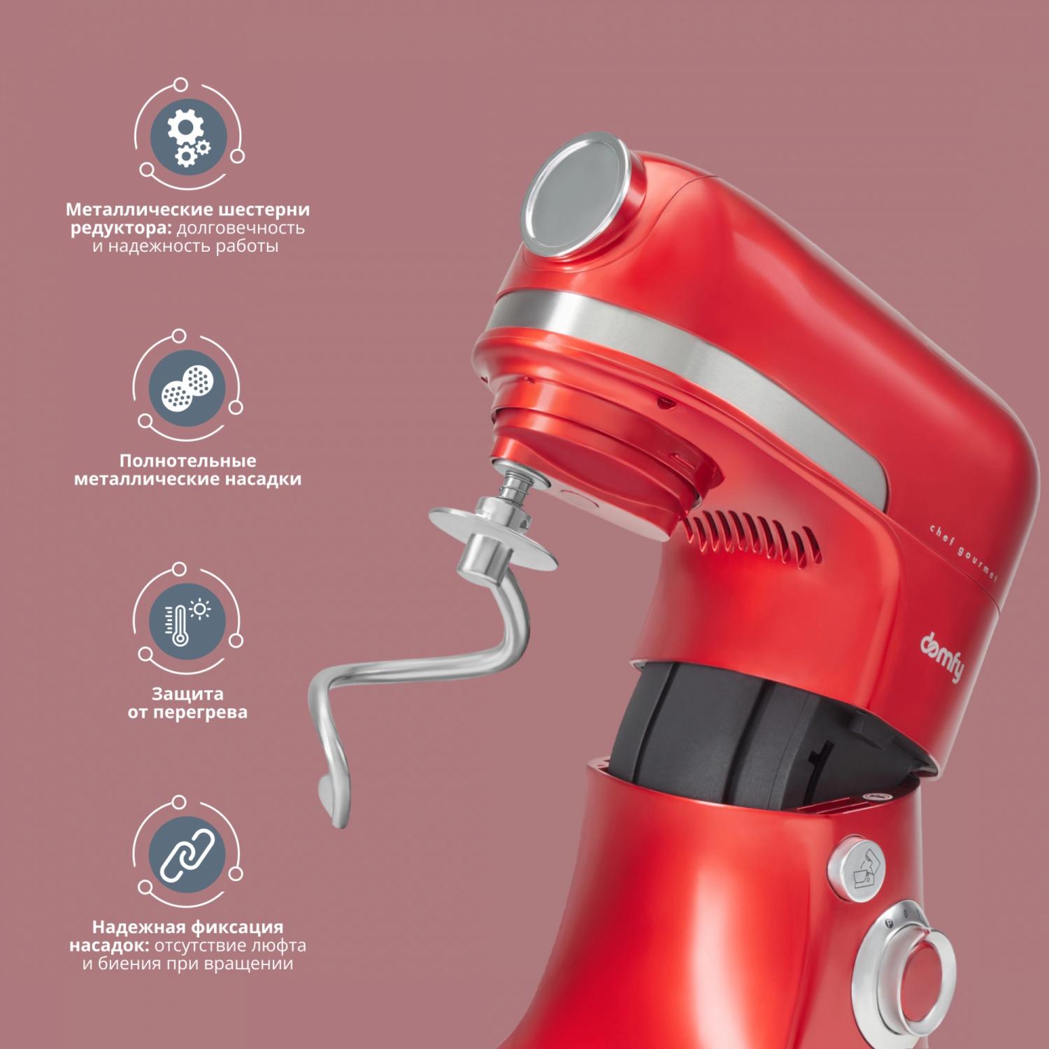 Кухонная машина Domfy DSC-KM502 планетар.вращ. 2000Вт красный / 4dealer.ru