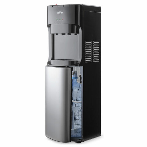 Классический кулер с нижней загрузкой бутыли черного цвета. Три крана, управление разливом воды при помощи трёх кнопок (горячая, холодная и вода комнатной температуры). Предназначены для дома и офиса. Бак горячей воды из нержавеющей стали.Классический кулер с нижней загрузкой бутыли. Три крана, управление разливом воды при помощи трёх кнопок (горячая, холодная и вода комнатной температуры). Кран горячей воды имеет "защиту от детей". Бак горячей воды из нержавеющей стали, холодной воды из пищевого пластика. Три LED индикатора (включение питания, индикатор нагрева, индикатор охлаждения - power, hot, frost). Рекомендуемое количество пользователей 20.