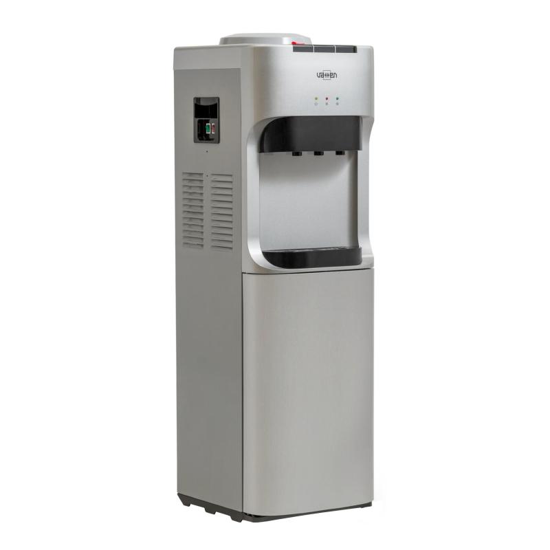 <b>Внимание! Подключайте аппарат к электросети только после заполнения его водой! Включение аппарата без воды может привести к его выходу из строя!</b> <br><br>Кулер для воды Vatten L45SK серебристый (нагрев и охлаждение).<br><br>Vatten L45SK — классический кулер с нижней загрузкой бутыли. Цвет корпуса — серебристый. Боковые панели металлические. Есть три крана, управление разливом воды происходит при помощи кнопок для горячей, холодной и воды комнатной температуры. Баки горячей ихолодной воды выполнены из нержавеющей стали. Кран горячей воды имеет ’защиту от детей’. Три LED-индикатора (включение питания, индикатор нагрева, индикатор охлаждения — power, hot, frost). Пригоден для эксплуатации в очень жарком климате — температура эксплуатации кулера от 10 до 38 °C.<br><br>Перед установкой снимите защитную пленку с пробки бутыли (при наличии).<br><br><b>Для корректной работы кулера рекомендуем использовать многоразовую тару.</b><br><br><!--noindex-->Внешний вид и/или характеристики товара могут быть изменены производителем в соответствии с производственным процессом.<!--/noindex-->