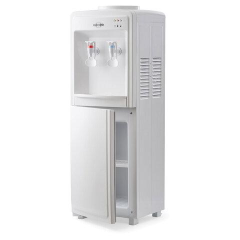 Стандартный напольный электронный кулер для воды бюджетного уровня. Со шкафчиком. Для дома. Для офиса. Современный дизайн. Цвет корпуса белый, все панели изготовлены из качественного, устойчивого к ультрафиолету пластика. Два крана-рычага. Подается горячая и холодная вода. Пригоден для эксплуатации в очень жарком климате - температура эксплуатации кулера от 10 до 38 градусов Цельсия.