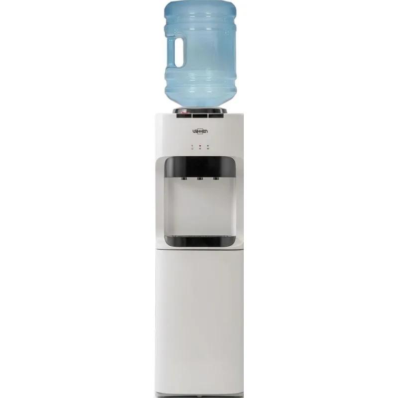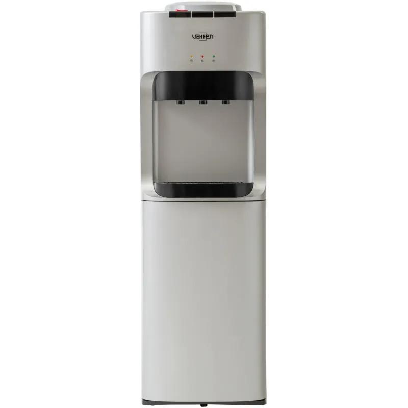 <b>Внимание! Подключайте аппарат к электросети только после заполнения его водой! Включение аппарата без воды может привести к его выходу из строя!</b> <br><br>Кулер для воды Vatten V45WE белый (нагрев и охлаждение).<br><br>Напольный кулер для воды без шкафчика, без холодильника. Электронное охлаждение (0,6л/ч) + нагрев воды (6л/ч). Цвет белый. Три крана с кнопками. Подходит для домашнего и офисного использования, на предприятиях и в учреждениях.<br>Бутылеприемник, верхняя и передняя панели изготовлены из высококачественного, устойчивого к ультрафиолету ABS пластика. Боковые панели стальные. Баки горячей воды выполнены из нержавеющей стали. Три LED-индикатора (включение питания, индикатор нагрева, индикатор охлаждения).<br><br>Внимание, вокруг кулера необходимо обеспечить свободное пространство, не менее 20 см, для свободной циркуляции воздуха. В противном случае аппарат может выйти из строя.<br><br>Перед установкой снимите защитную пленку с пробки бутыли (при наличии).<br><br><b>Для корректной работы кулера рекомендуем использовать многоразовую тару.</b><br><br><!--noindex-->Внешний вид и/или характеристики товара могут быть изменены производителем в соответствии с производственным процессом.<!--/noindex-->