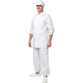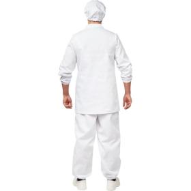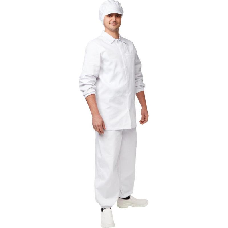 <p>Белая мужская куртка прямого силуэта, из смесовой ткани саржевого переплетения плотностью 150 г/кв.м, состав ткани — 65% <nobr>п/э</nobr> 35% <nobr>х/б</nobr>, предназначена для ношения на пищевых предприятиях. Перед куртки с центральной потайной застежкой на кнопки до верха. Воротник отложной. Втачной длинный рукав, с манжетой по низу, собранной на эластичную ленту. На левой полочке один боковой и один нагрудный потайные карманы с клапаном.</p><BR>К куртке поварской у17-КУ подходят брюки у17-БР, утепленный жилет у17-ЖЛ. Также можно подобрать халат у17-ХЛ. В коллекции у17 представлена также женская линейка курток.
