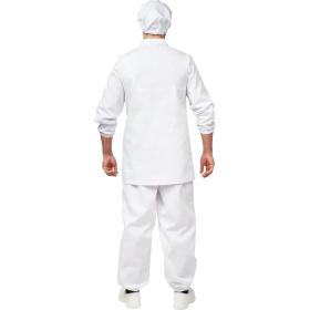 Куртка для пищевого производства у17-КУ ХАССП мужская белая с длинным рукавом (размер 60-62, рост 182-188) предназначена для работников пищевой промышленности. Модель защищает от общих производственных загрязнений и выполнена в базовом белом цвете, подходящем для помещений с повышенными требованиями к гигиене.<br><br>Изделие изготовлено из смесовой ткани саржевого переплетения «Оптима», в составе которой 65% полиэстера и 35% хлопка. Плотность материала — 150 г/кв.м. <br><br>Защитный свойства:<br>— В — от воды и растворов не токсичных веществ (атмосферные осадки);<br>— Ми — защита от истирания.<br><br>Куртка выполнена в прямом силуэте. Центральная застёжка — потайная на кнопках, воротник — отложной. На левой полочке расположен внутренний накладной карман с клапаном. Длинные рукава собраны на эластичную ленту, что обеспечивает плотное прилегание и свободу движений.<br><br>Рекомендуется машинная стирка при температуре не выше 40°C.<br><br>Изготовлено в соответствии со стандартами: ГОСТ 12.4.280-2014, ТР ТС 019/2011.<br><br>Коллекция у17 также включает брюки у17-БР и халат у17-ХЛ. Доступна женская линейка.<br><br>Подобрать размер <br><br>Цвет на изображении товара в интернет-магазине или в печатном каталоге может отличаться от оригинала из-за особенностей цветопередачи монитора.