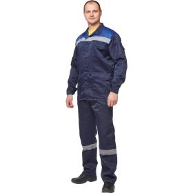 Куртка рабочая летняя мужская л03-КУ с СОП синяя (размер 44-46 рост 182-188). Модель предназначена для работников коммунальных и хозяйственных служб. Имеет удобный крой с регулируемой посадкой по талии. Коллекция спецодежды Л03 включает мужские и женские комплекты, что обеспечивает возможность подбора унифицированной формы.<br><br>Куртка изготовлена из смесовой ткани с водоотталкивающей пропиткой. Основной материал — 80% полиэстер и 20% хлопок, плотность — 210 г/кв. м. Это обеспечивает износостойкость и устойчивость к загрязнениям.<br><br>Защитные свойства:<br>— Ми — защита от механических воздействий: истирания;<br>— З — защита от общих производственных загрязнений.<br><br>Потайная застежка на пуговицы делает изделие удобным в носке. Накладные карманы с клапанами расположены спереди, обеспечивая практичность. Регулируемая кулиса на линии талии помогает подогнать изделие по фигуре. Светоотражающие полосы повышают видимость в условиях недостаточного освещения.<br><br>Куртка соответствует стандартам ГОСТ 12.4.280-2014 и ТР ТС 019/2011. Рекомендуется машинная стирка при температуре до 40 градусов.<br><br>Коллекция Л03 включает брюки Л03-БР и полукомбинезон Л03-ПК, которые дополняют куртку. Также представлены женские комплекты: куртка и полукомбинезон Л03-КПК-жен.<br><br>Подобрать размер <br><br>Цвет на изображении товара в интернет-магазине или в печатном каталоге может отличаться от оригинала из-за особенностей цветопередачи.