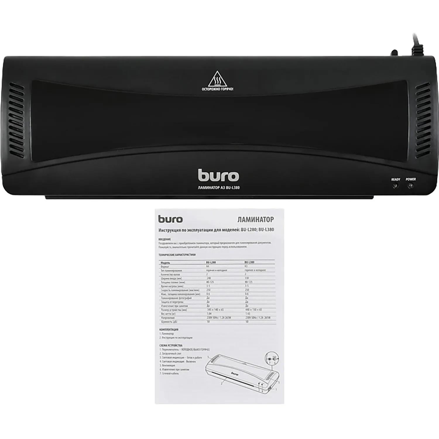 В вашем офисе очень часто печатаются этикетки или информационные листки и вам необходимо, чтобы они долгое время сохраняли первоначальный <!--noindex-->Внешний вид? Приобретите ламинатор BURO <nobr>BU-L380</nobr>, с его помощью вы сможете защитить все важные документы от негативных воздействий окружающей среды. Для ламинирования можно использовать пленку, толщина которой от 80 до 125 мкм. Нанести защитное покрытие можно на документы, ширина которых не превышает 330 мм. Толщина используемой бумаги не должна быть больше 0,6 мм.<BR><BR>С помощью ламинатора BURO <nobr>BU-L380</nobr> вы сможете быстро защитить большое количество документов, так как его скорость достигает 25 см в минуту. Прибор будет готов к применению всего через 5 минут после включения, именно столько времени ему потребуется, чтобы нагреться. Если вы боитесь, что документ не выдержит воздействия высоких температур, можно выбрать функцию холодного ламинирования. В случае если бумагу при ламинировании перекосило, ее легко освободить. Ламинировать кроме документов вы сможете и фотографии.Инструкция по эксплуатации<br><br>Гарантия осуществляется через сеть сервисных центров 'Сеть Компьютерных Клиник'.<BR><BR><!--noindex-->Товар относится к ценовому сегменту «бюджет». Имеет базовые характеристики и более простую упаковку. Отвечает основным требованиям потребления.<!--/noindex--><br><br><!--noindex-->Внешний вид и/или характеристики товара могут быть изменены производителем в соответствии с производственным процессом.<!--/noindex-->