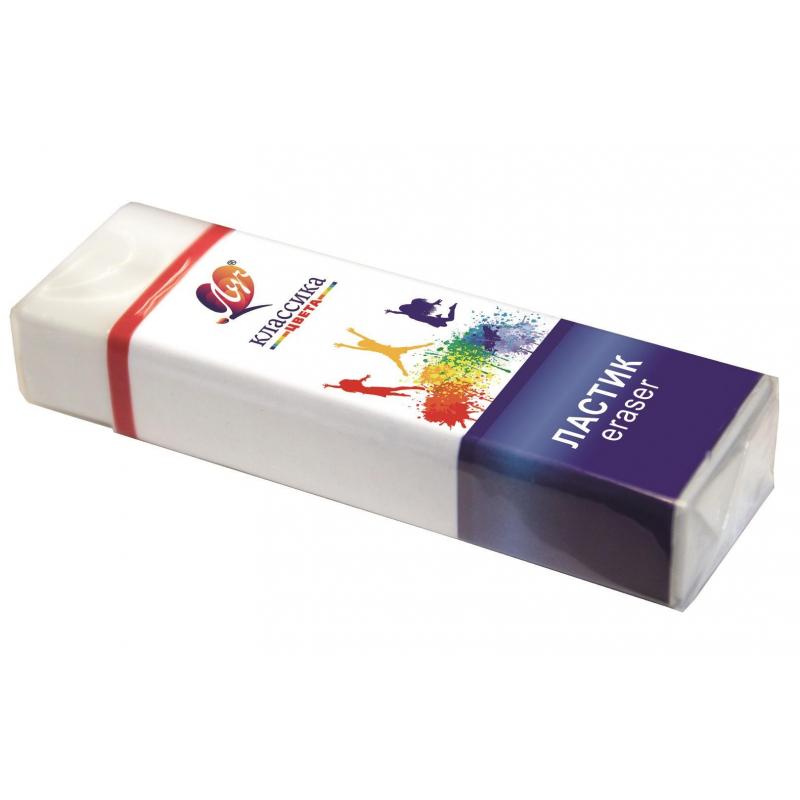 Ластик предназначен для удаления надписей и рисунков, сделанных чернографитными карандашами. Ластик "Классика" изготовлен из термопластичной резины. Не содержат ПВХ. Цвет белый. Размер 40х19х10 мм. Материал держателя: картонный.