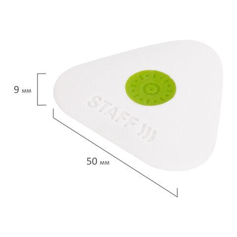 Ластик STAFF "Trio XL" обеспечивает лёгкое и чистое стирание без повреждения поверхности бумаги.Предназначен для удаления надписей и рисунков, сделанных чернографитными карандашами. Имеет треугольную форму. Пластиковый держатель салатового цвета не только служит отличным дополнением к белому ластику, но и обеспечивает комфорт при стирании. Размер - 50х50х9 мм. Ластики упакованы в дисплей.