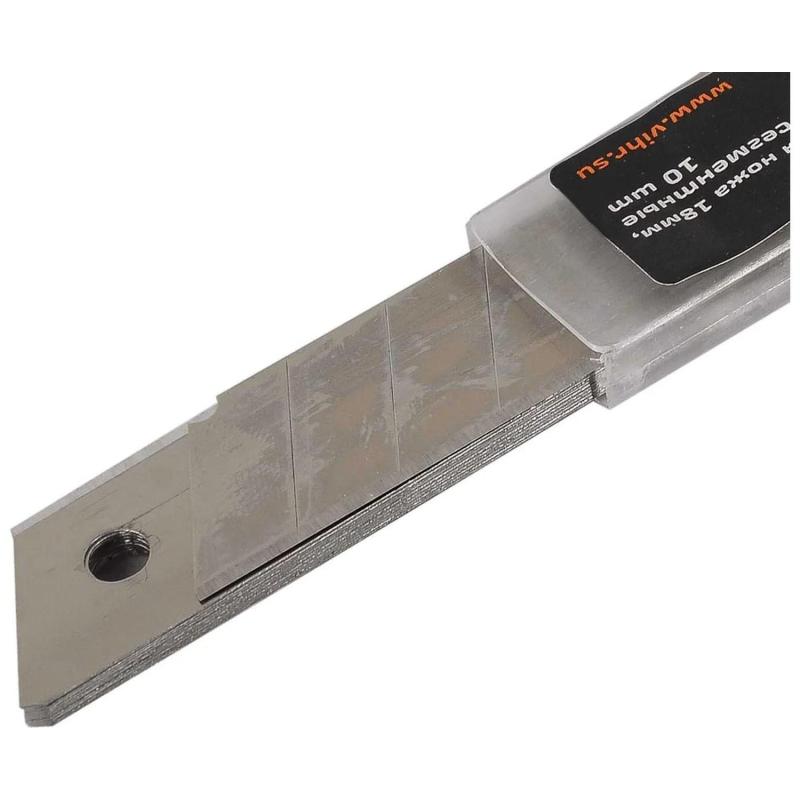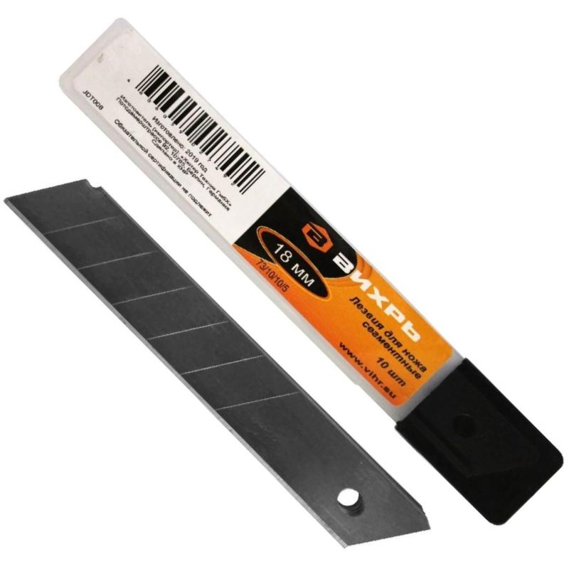 Лезвие сменное сегментированное Вихрь стальное 18 мм прямоугольное (10 штук в упаковке) подходят как к ножам Вихрь, так и к ножам других брендов с шириной лезвия 18 мм.Особенности изделия:- Лезвия изготовлены из стали.- В комплекте 10 шт.Характеристики изделия:- Ширина лезвия - 9 миллиметров.- Толщина лезвия - 0.35 миллиметров.Меры предосторожности:- При работе с лезвиями используйте средства защиты.- Не утилизируйте лезвия с бытовыми отходами.- Хранить в недоступном для детей месте.Внешний вид и/или характеристики товара могут быть изменены производителем в соответствии с производственным процессом.