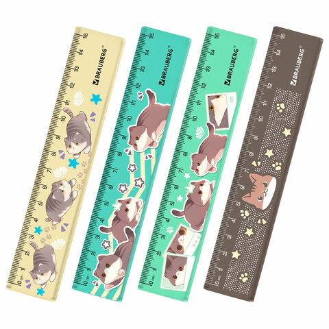 Линейка BRAUBERG "CUTE CATS" предназначена для чертёжных и измерительных работ.Линейка из прочного пластика, имеет безопасные закруглённые углы. Линейка обладает четкой разметкой, что делает ее удобной в использовании. Длина шкалы составляет 15 см. Поставляется в нескольких вариантах дизайна (без возможности выбора). Упакована в пластиковый пакет с европодвесом.