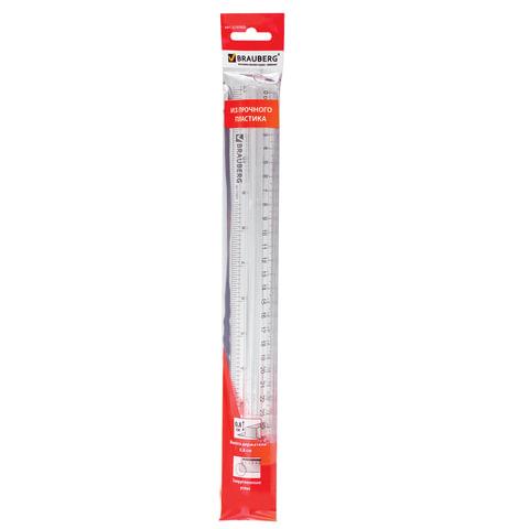 Линейка BRAUBERG предназначена для чертёжных и измерительных работ.Прозрачная линейка из пластика с держателем. Длина шкалы составляет 30 см. Линейка обладает четкой разметкой, что делает ее удобной в использовании. Имеет двойную градацию шкалы (сантиметр, дюйм). Упакована в пластиковый пакет с европодвесом.