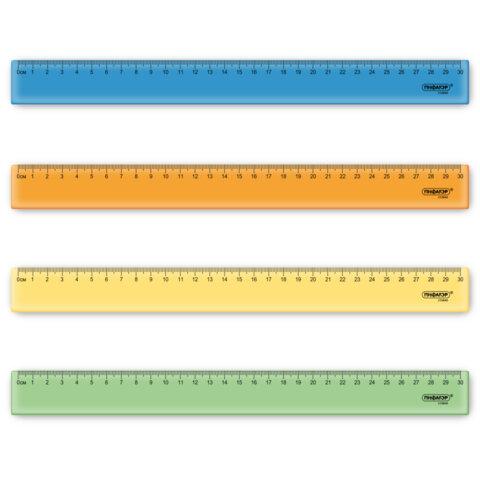 Линейка ПИФАГОР предназначена для чертежно-измерительных работ. Отлично подойдет для использования в школе.Линейка из прочного прозрачного неонового пластика. Имеет безопасные закруглённые углы и четкую контрастную миллиметровую шкалу. Длина шкалы составляет 30 см. Поставляется в нескольких вариантах цвета (без возможности выбора).