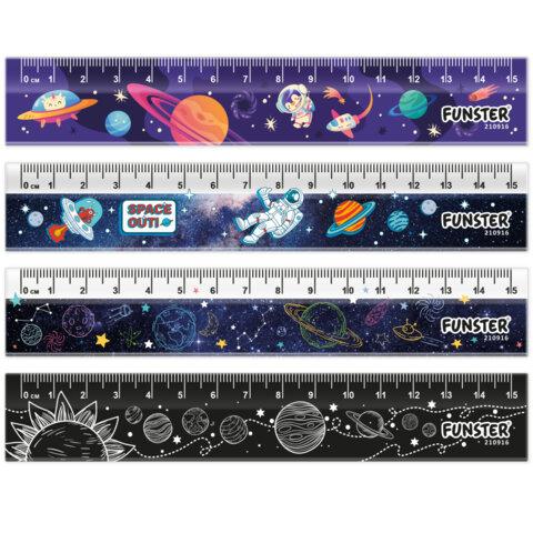 Линейки с дизайнами FUNSTER "КОСМОС" предназначены для чертёжных и измерительных работ.Линейки FUNSTER "КОСМОС" из прочного пластика, имеют безопасные закруглённые углы. В наборе 4 шт. Обладают четкой разметкой, что делает их удобными в использовании. Длина шкалы составляет 15 см. Упакованы в пенал на молнии.