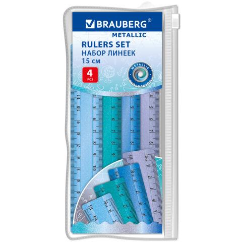 Линейки металлик BRAUBERG предназначены для чертёжных и измерительных работ.Линейки из прочного пластика, имеют безопасные закруглённые углы. В наборе 4 шт. Обладают четкой разметкой, что делает их удобными в использовании. Длина шкалы составляет 15 см. Упакованы в пенал на молнии.