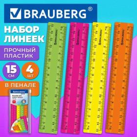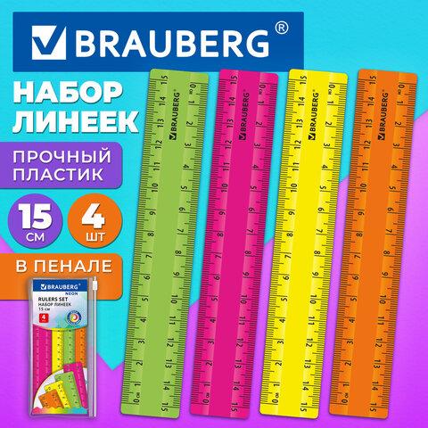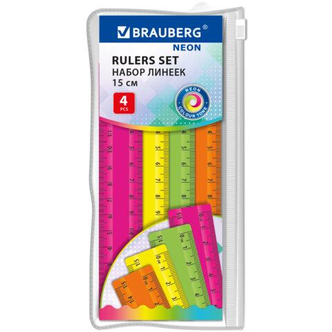 Неоновые линейки BRAUBERG предназначены для чертёжных и измерительных работ.Линейки из прочного пластика, имеют безопасные закруглённые углы. В наборе 4 шт. Обладают четкой разметкой, что делает их удобными в использовании. Длина шкалы составляет 15 см. Упакованы в пенал на молнии.