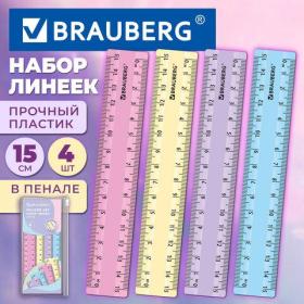 Пастельные линейки BRAUBERG предназначены для чертёжных и измерительных работ.Линейки из прочного пластика, имеют безопасные закруглённые углы. В наборе 4 шт. Обладают четкой разметкой, что делает их удобными в использовании. Длина шкалы составляет 15 см. Упакованы в пенал на молнии.