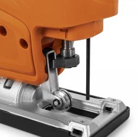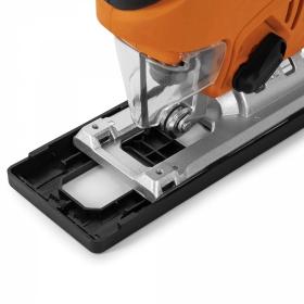 | Особенности | Плавная регулировка скорости; Фиксатор кнопки включения; Штуцер для подключения пылесоса; Регулировка маятникового хода; Надежная стальная поворотная подошва (90-45 градусов); Лазерный указатель |