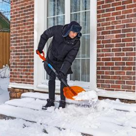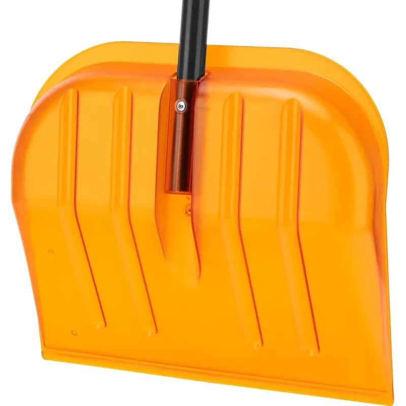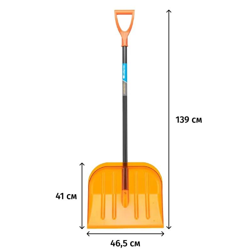 Лопата для уборки снега Сибртех пластик (поликарбонат) 46.5×41 см с черенком 100 см (с рёбрами жёсткости, с ручкой на черенке)<br><br>Усиленная лопата для уборки снега Сибртех 61655 длиной 1390 мм, с ковшом из поликарбоната размером 465×410 мм, со стальным черенком, используется для расчистки территории после снегопада. С её помощью можно быстро очистить дорожки на дачном участке и в сквере, тротуар в городе, площадку перед подъездом, гаражом, парковку. Вместительный ковш захватывает большое количество снега, что значительно ускоряет выполнение работ.<br><br>Преимущества:<br>Морозостойкость — ковш из поликарбоната выдерживает температуру до −50 °C.<br>Надёжность и долговечность — черенок изготовлен из среднеуглеродистой стали, ковш характеризуется высокой ударопрочностью и износостойкостью.<br>Защита от разрушения — черенок покрыт порошковой краской для защиты от коррозии.<br>Износостойкость — алюминиевая планка предохраняет кромку ковша от повреждений и истирания при работе с жёстким снегом.<br>Устойчивость к деформации — ударопрочный ковш усилен рёбрами жёсткости.<br>Эргономичность — удобная рукоятка позволяет эффективно распределять нагрузку во время работы.