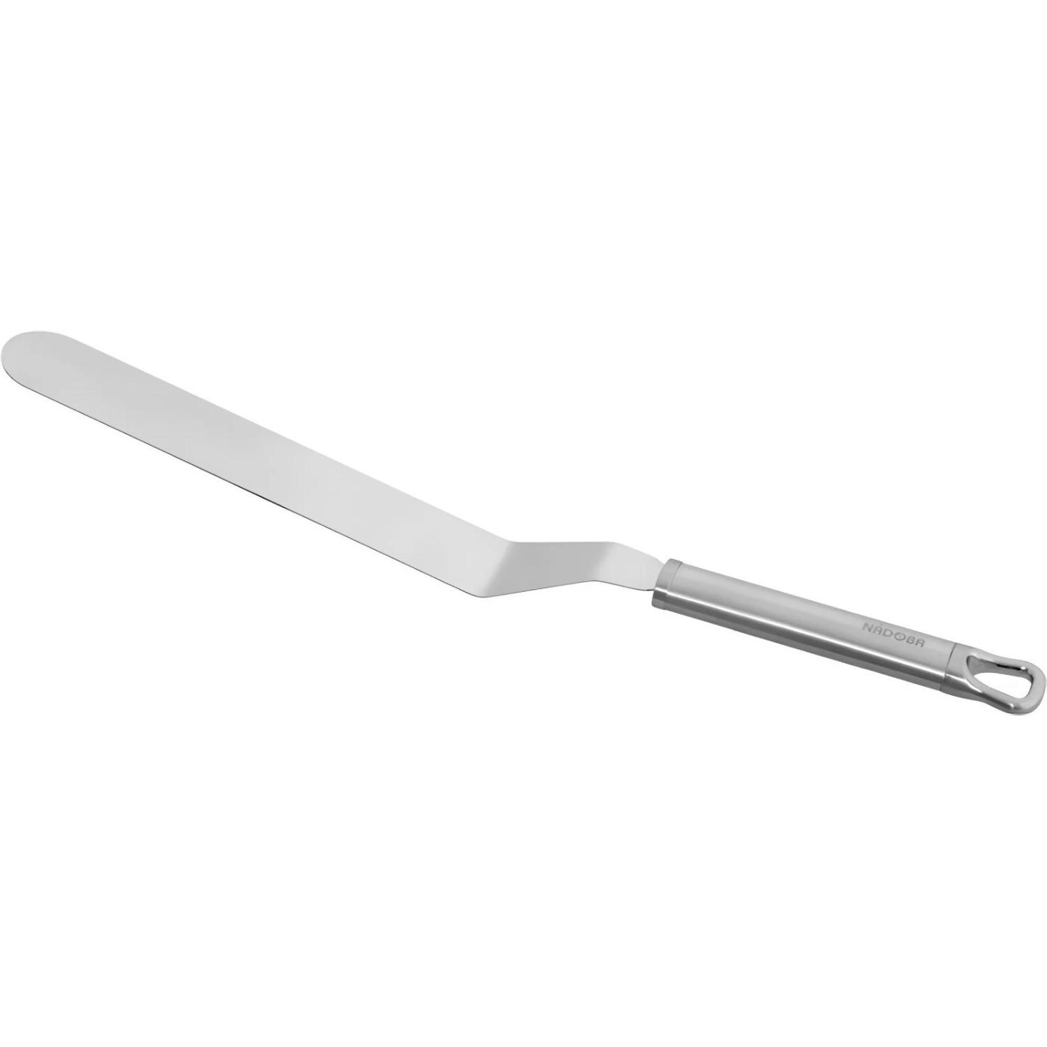 Лопатка кондитерская Nadoba Karolina нержавеющая сталь (721053).<BR>Лопатка из серии Karolina изготовлена из нержавеющей стали 18/10, что обеспечивает стойкое сопротивление к коррозии и окислению при контакте с пищей, в следствии чего не изменяется вкус и не появляются посторонние запахи.<BR>Размер лопатки: 39.5×5×3.5 см.<BR>При высоких температурах лопатка не изменяет свой внешний вид и будет радовать Вас долгие годы. <br><br>— перед первым использованием требуется тщательно промыть изделия; <br>— хранить изделия в чистом, сухом виде; <br>— не рекомендуется использовать губки с абразивным слоем; <br>— не рекомендуется промывка изделий в посудомоечной машине с использованием моющих средств, в состав которых входит активный кислород.