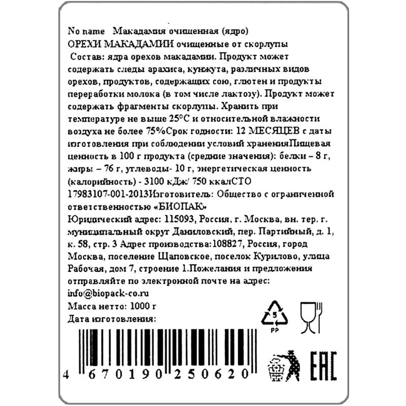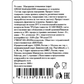 Макадамия — вкусный и полезный орех, который широко используется в кулинарии, например, для приготовления десертов. По вкусу слегка напоминает фундук с ванильными нотками. Макадамия не только изысканное лакомство, которое станет украшением любого чаепития, но и крайне полезный для организма продукт: орех содержит клетчатку, эфирные масла, витамины В и Е. В данной упаковке представлены орехи сушеные, очищенные от скорлупы и готовые к употреблению.<br /> Состав: ядра орехов макадамии.<br /> Пищевая ценность на 100 г: углеводы — 10 г, белки — 8 г, жиры — 76 г.<br /> Энергетическая ценность на 100 г: 750 ккал.<br /> Срок годности: 1 год.<br /> Условия хранения: в сухом прохладном месте при температуре воздуха не выше 25 градусов Цельсия и относительной влажности воздуха не более 75%. Беречь от попадания прямых солнечных лучей.<br /> Вес: 1 кг.<br /> Страна происхождения: Россия.