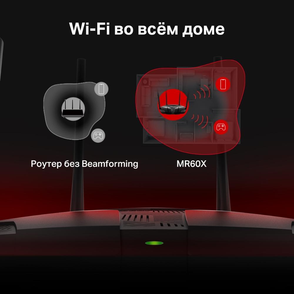 Основное назначение Mercusys MR60X — это обеспечение высокоскоростного и стабильного беспроводного подключения к интернету. Роутер поддерживает стандарт Wi-Fi 6, что позволяет достичь скорости передачи данных до 1500 Мбит/с. Это особенно важно для задач, требующих высокой пропускной способности, таких как потоковое видео высокого разрешения, онлайн-игры и передача больших файлов. Mercusys MR60X также обеспечивает надежное подключение для множества устройств одновременно, что делает его идеальным выбором для современных домов и офисов.