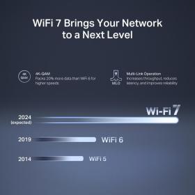 Новейший стандарт Wi-Fi 7 оснащён каналами 160 МГц, технологией 4K-QAM и другими инновациями. Это значит потрясающая производительность сети — быстрее, чем когда-либо, с минимальными помехами.