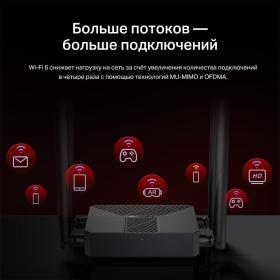 Маршрутизатор Mercusys MR62X обеспечивает высокую скорость передачи данных благодаря поддержке стандарта Wi-Fi 6. Это позволяет быстро передавать большие объемы информации, что особенно важно для работы с мультимедийными данными и в условиях высокой нагрузки на сеть.