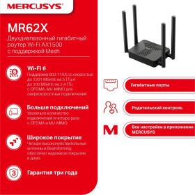 Маршрутизатор Mercusys MR62X — это надежное и простое в использовании сетевое устройство, которое обеспечивает высокую скорость передачи данных и поддерживает стандарт Wi-Fi 6. Он идеально подходит для использования в домах и небольших офисах, где требуется надежное и быстрое интернет-соединение.