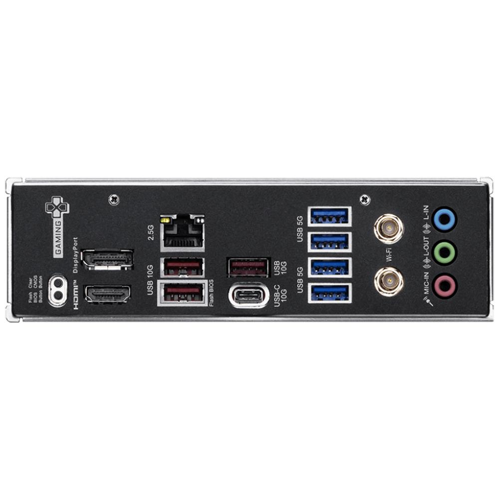 Плата предлагает комбинацию проводных и беспроводных решений для высокой скорости передачи данных. Встроенный сетевой контроллер 2.5G LAN и беспроводной модуль Wi-Fi 6E обеспечивают стабильное соединение с минимальными задержками, что критически важно для онлайн-игр и потоковой передачи. Также присутствует высокоскоростной слот Lightning Gen 5 x4 M.2 (PCIe 5.0) для накопителей нового поколения, слот PCIe 4.0 и фронтальный разъем USB Type-C для удобного подключения периферии.