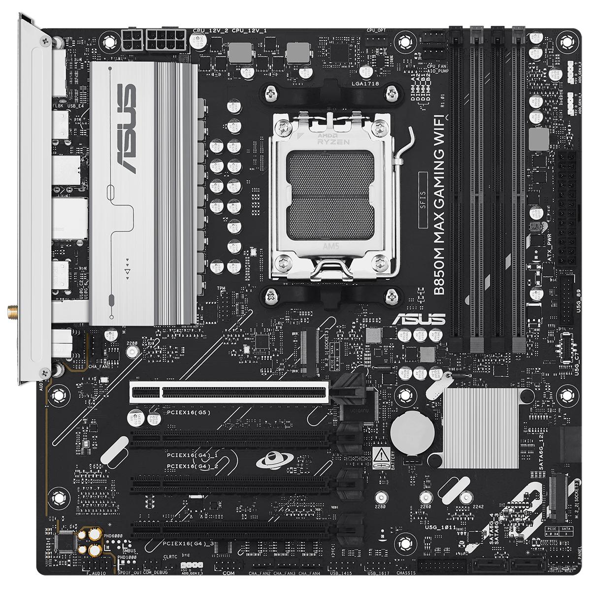 Материнская плата ASUS B850M MAX GAMING WIFI позволяет собрать компактную, но мощную игровую систему на базе новейших процессоров AMD Ryzen. Эта модель формата Micro-ATX оснащена современными технологиями, такими как PCIe 5.0 и поддержка DDR5-памяти, что делает её перспективной основой для производительных сборок.